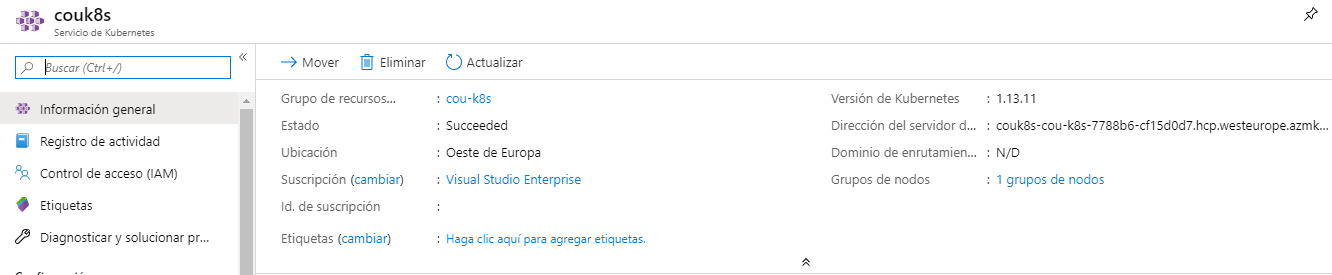 Una vez creado el clúster podemos ir al portal a verificarlo y ver sus propiedades.