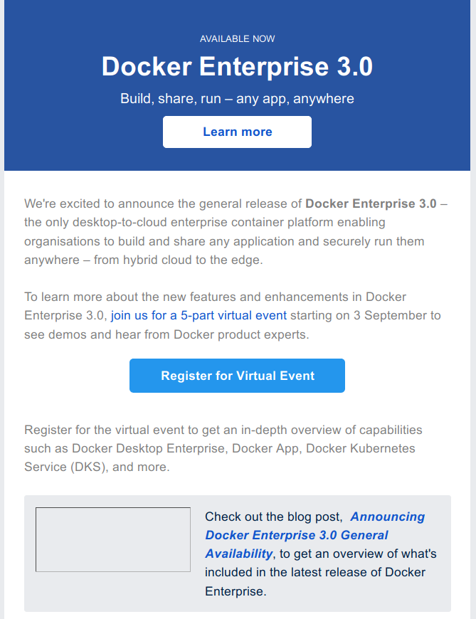 Nos ha llegado la invitación para un curso gratuito y remoto sobre Docker Enterprise V 3.0.