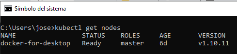 El resultado nos muestra el nodo de Kubernetes que se esta ejecutando.