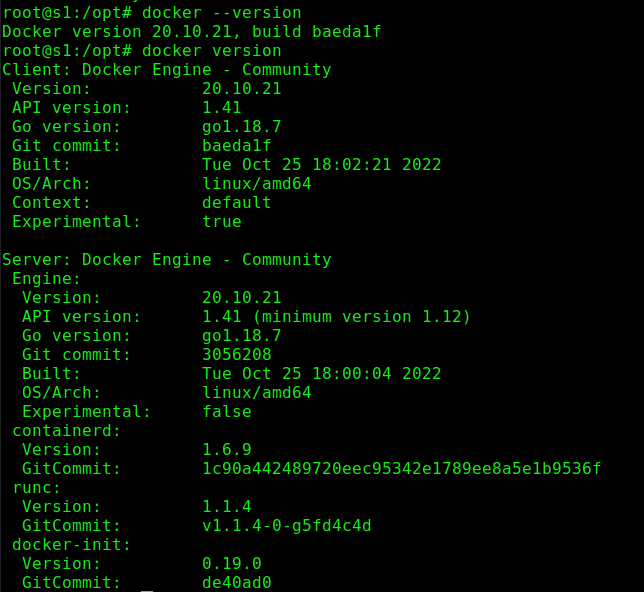 Verificamos las versiones de Servidor y Cliente de Docker.