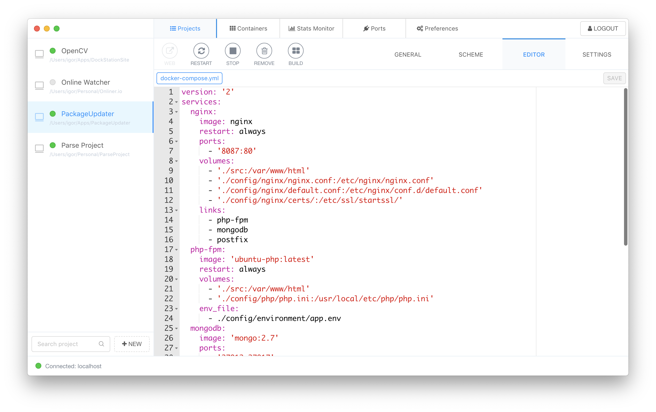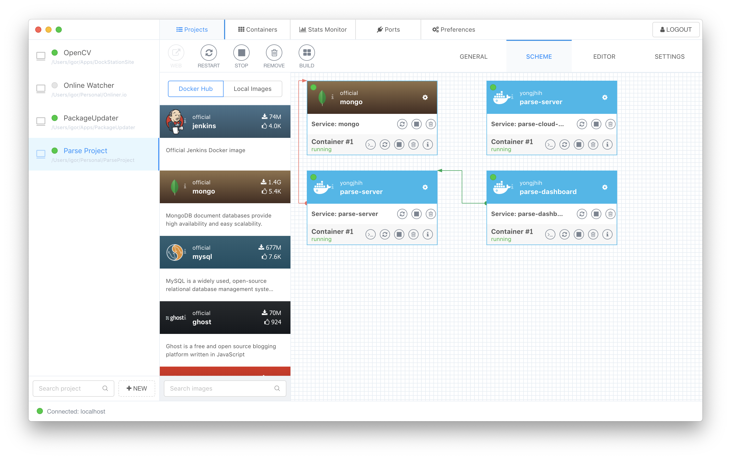 Una de las funciones es gestionar un “Proyecto” que nos permite de manera gráfica ver y configurar nuestros contenedores.