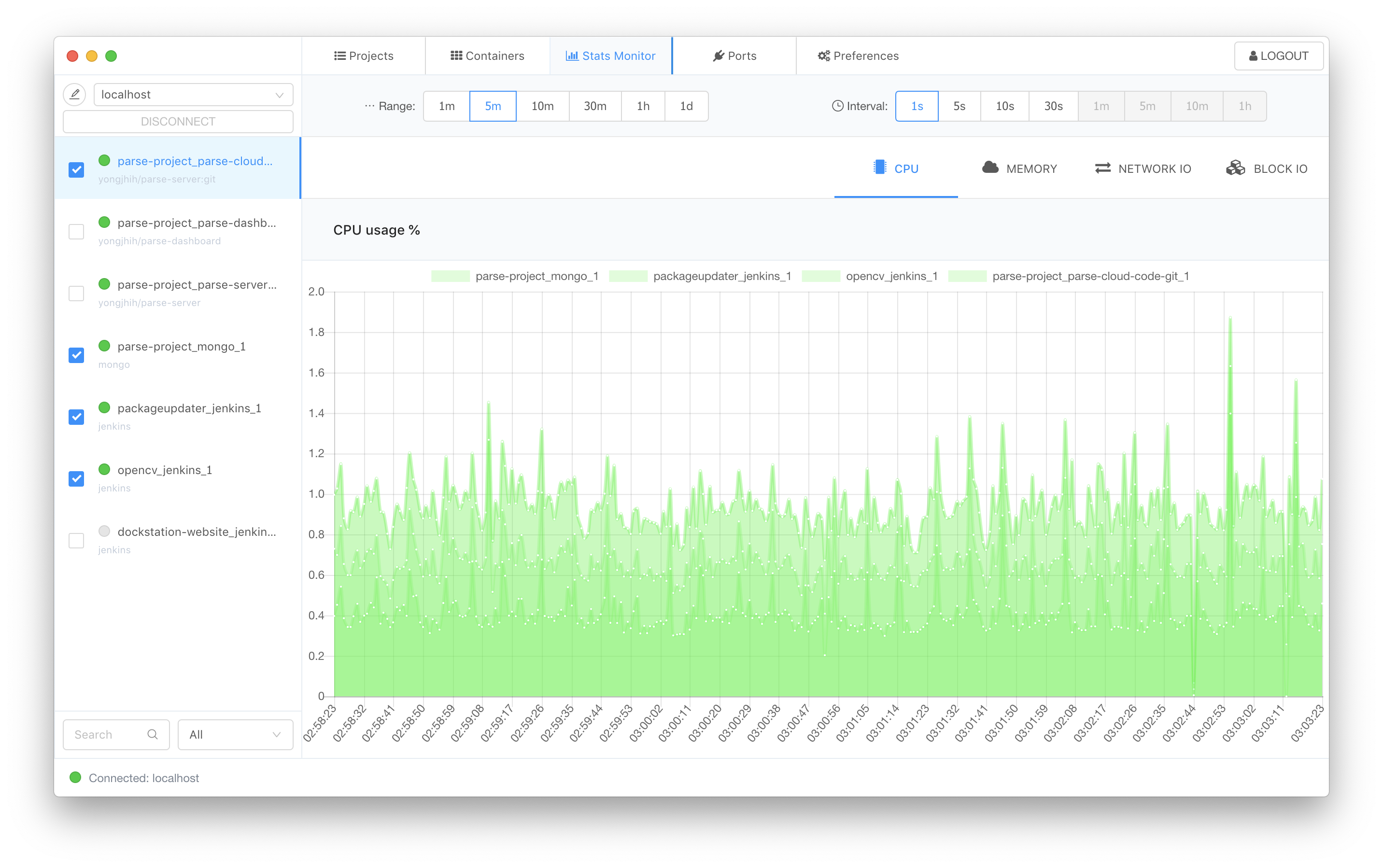 Funciona en modo local y remoto. Brinda información sobre consumo de recursos de manera gráfica, en tiempo real y simple. Interactúa con Docker en VirtualBox, VMWare y Hyper-v. Accede directamente a Docker Hub.