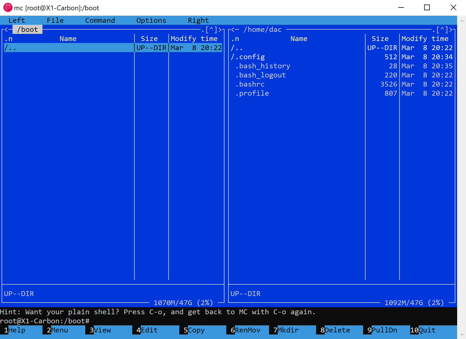 En uno de los equipos creados (Debian) podemos ver la estructura de los archivos y que dentro de la carpeta BOOT no hay Kernels, porque ya los ofrece Windows 10.