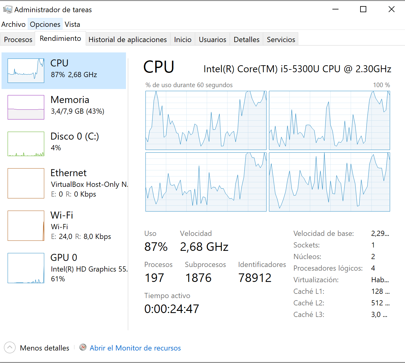 En mi equipo de pruebas, i5, 3 ghz, 8 gb ram, he notado lentitud en general al arrancar un entorno con Debian, Docker for Windows y Kubernetes. Arrancan unos 12 contenedores y todos los componentes en funcionamiento degradan la performance.