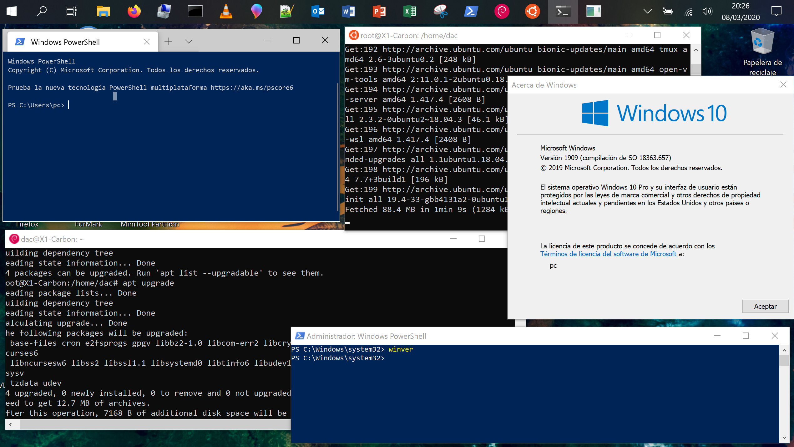 Pruebas Windows 10 WSL2 y entornos Linux.