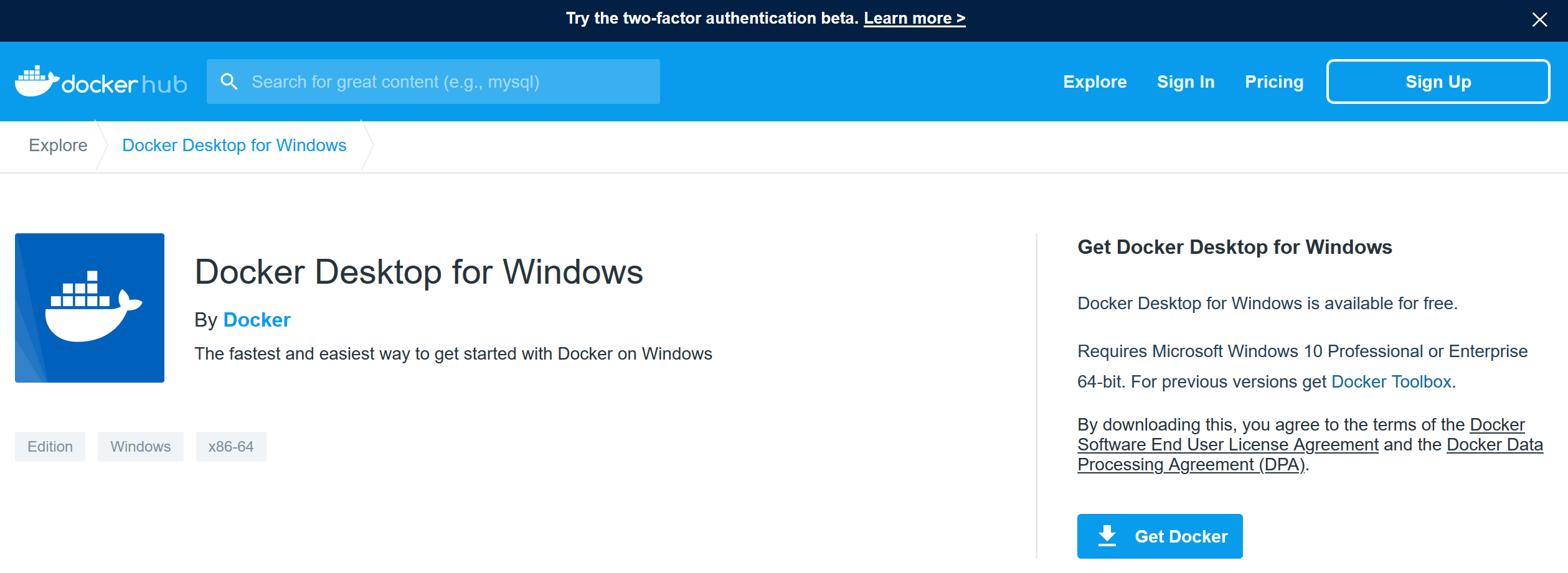 Para poder gestionar contenedores desde Windows, que estén creados en estos nuevos entornos, debemos descargar el Docker Desktop for Windows.